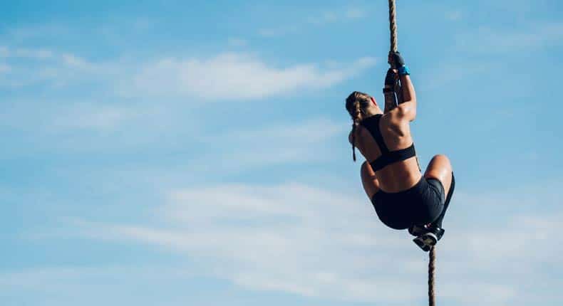 Learn J-hook/S-hook techniques, foot locks, and efficient hips-to-hands timing on our climbing ropes. Converts grip strength into vertical speed so you ring the bell without burning out your forearms.